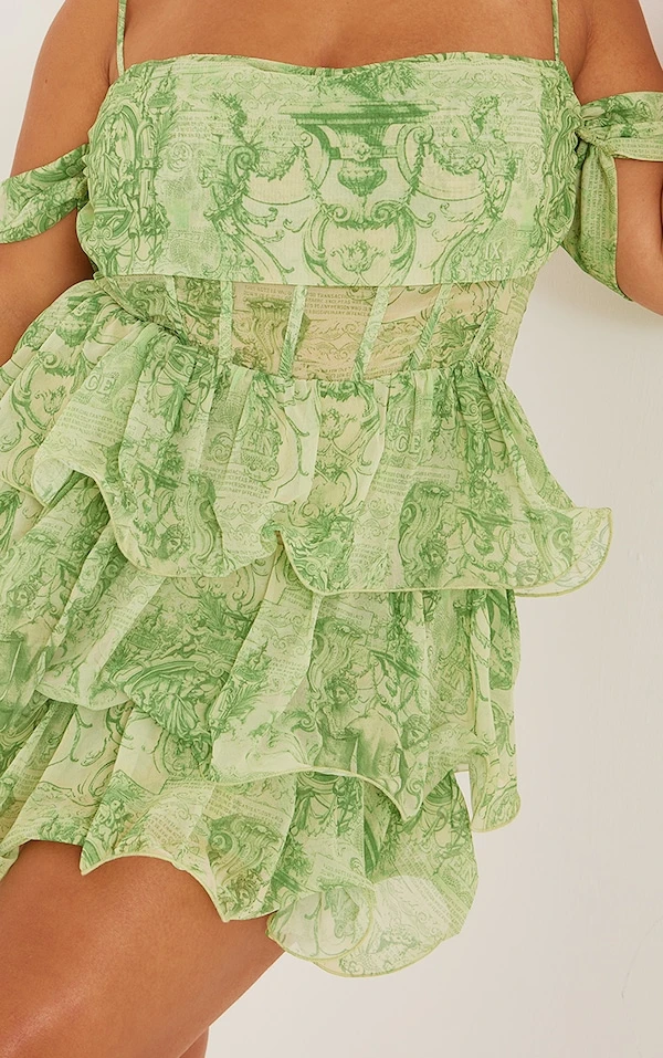 Plus Robe moulante verte imprimé statue à fronces
