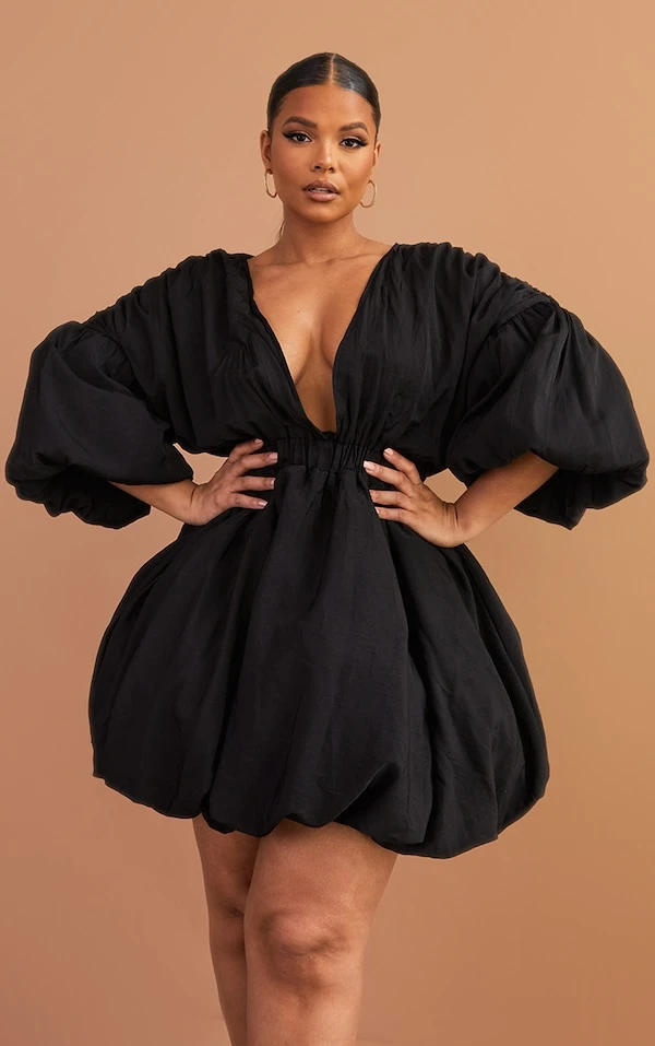 Plus Robe noire bouffante à manches ballon