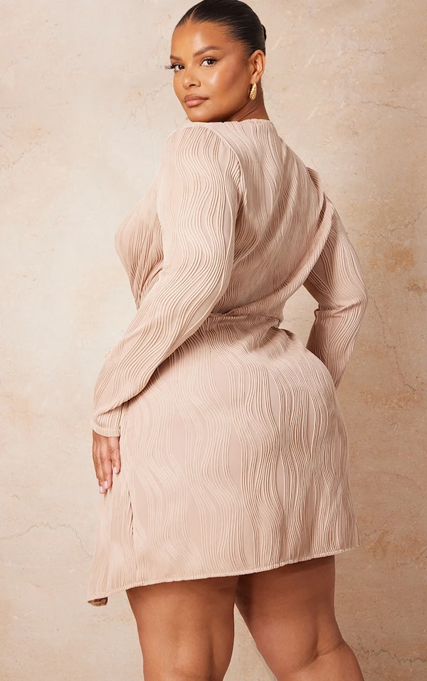 Plus Robe plissée gris pierre croisée sur le devant
