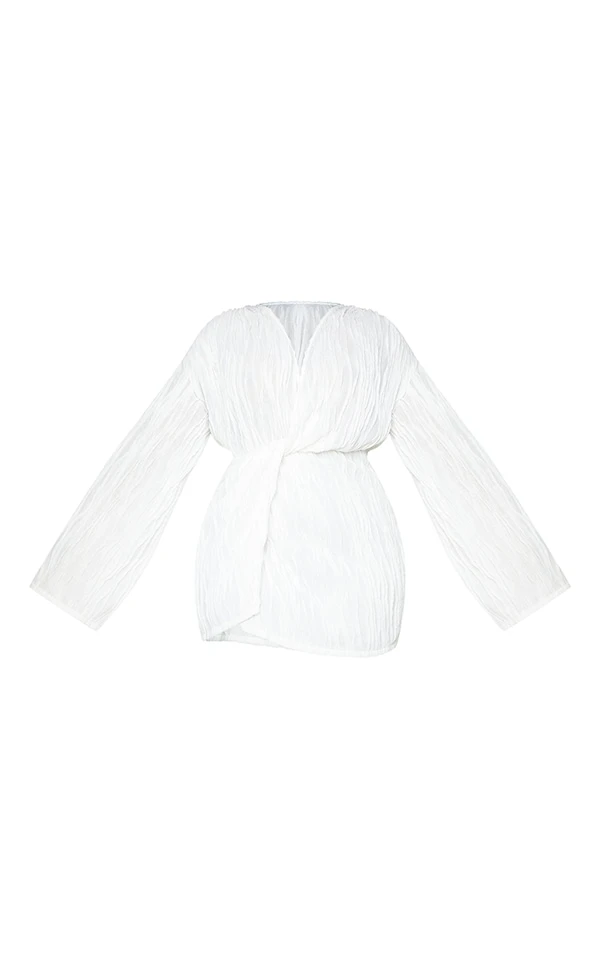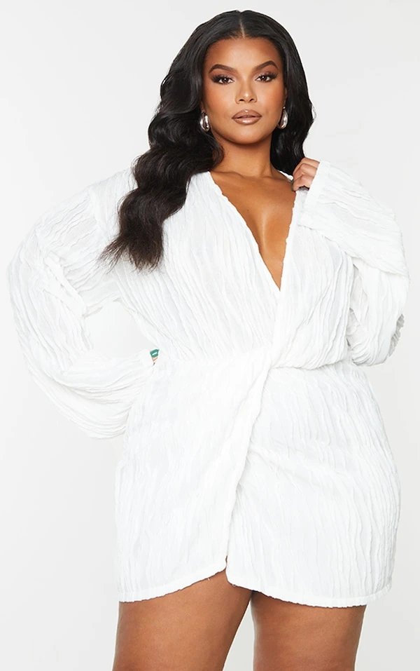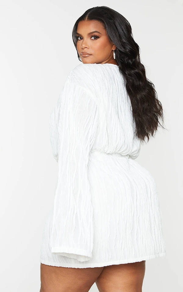 Plus Robe texturée blanche à devant portefeuille