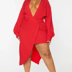 Plus Robe texturée rouge portefeuille à décolleté plongeant