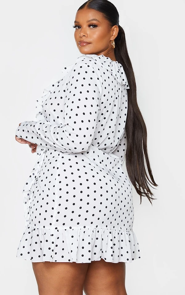 Plus Robe volantée style cache-coeur à imprimé pois blanche