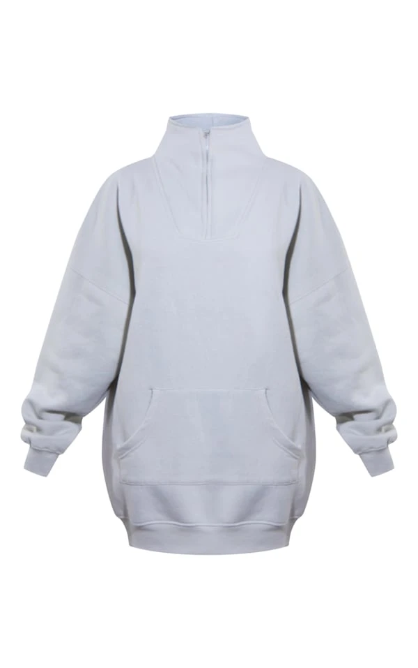 PRETTYLITTLETHING Petite Robe pull gris clair à zip trois-quart