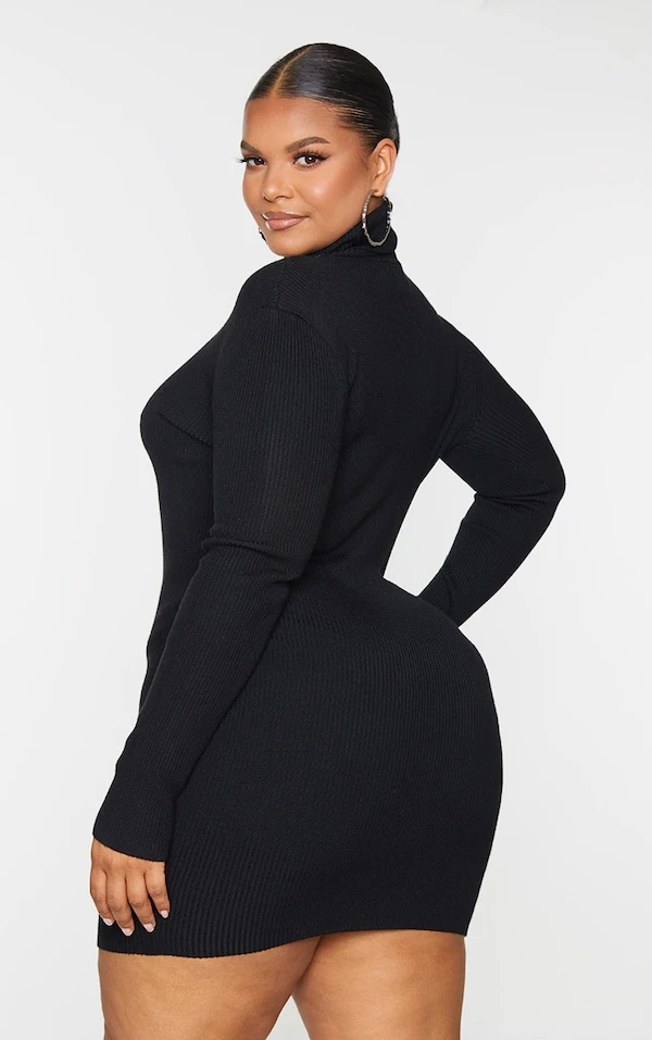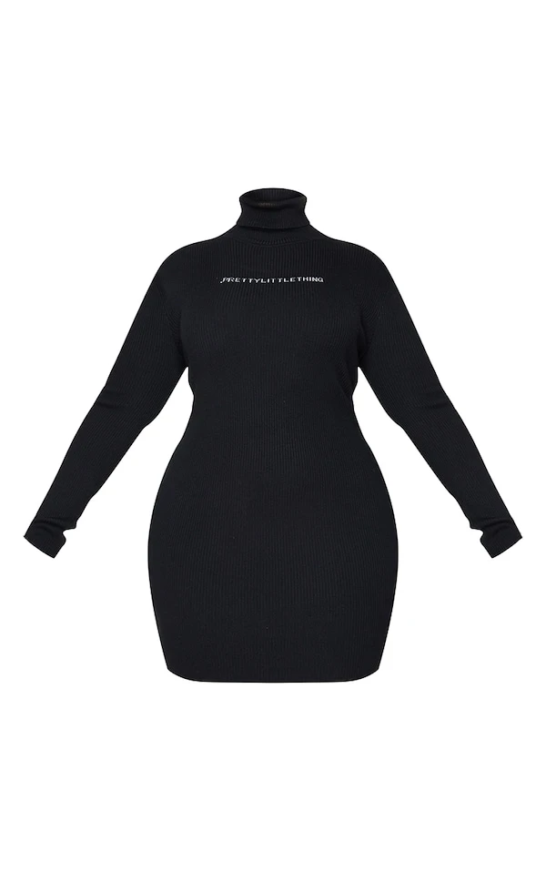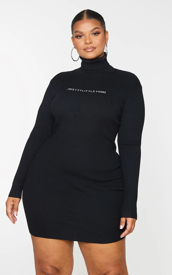PRETTYLITTLETHING Plus Robe moulante en maille côtelée noire