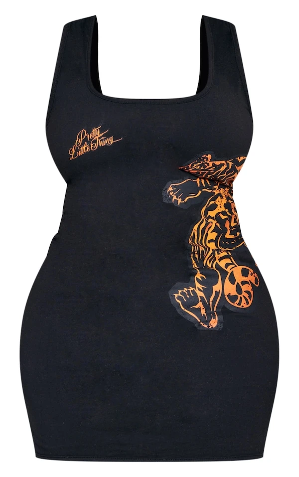 PRETTYLITTLETHING Plus Robe moulante noire à graphisme