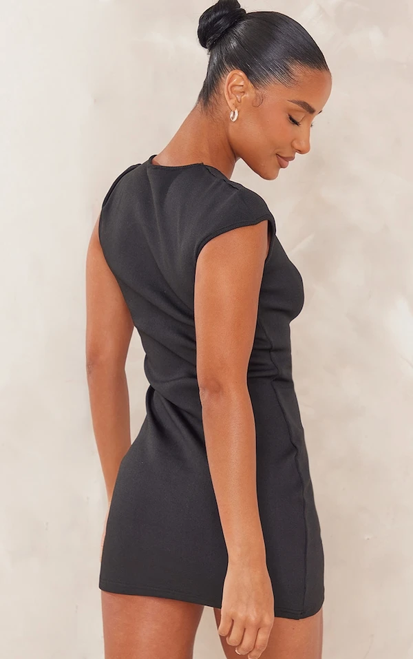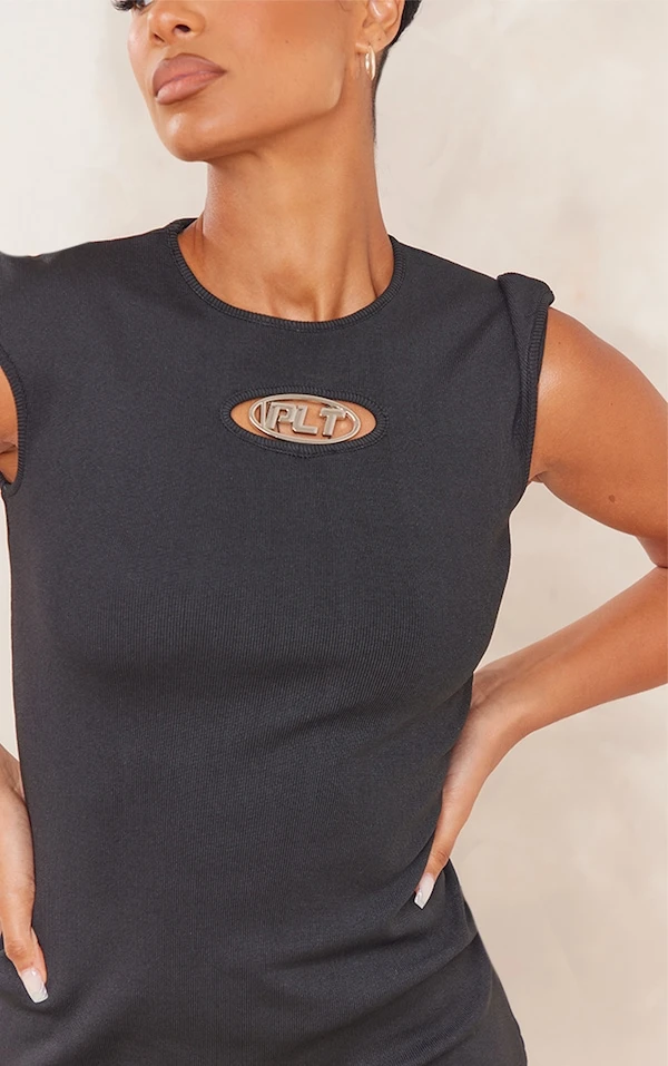 PRETTYLITTLETHING Robe moulante côtelée noire à empiècement
