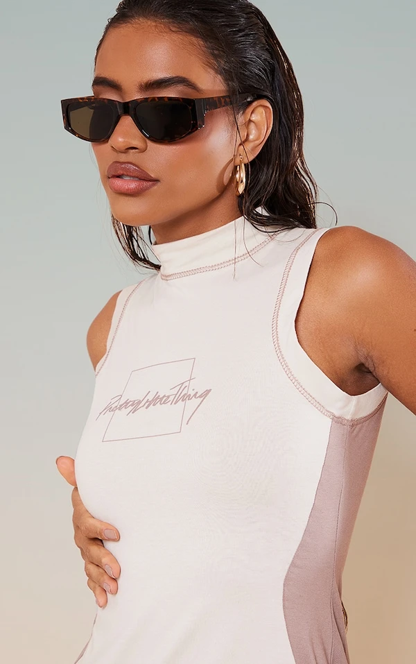 PRETTYLITTLETHING Robe moulante gris pierre à coutures contrastantes et dos nageur