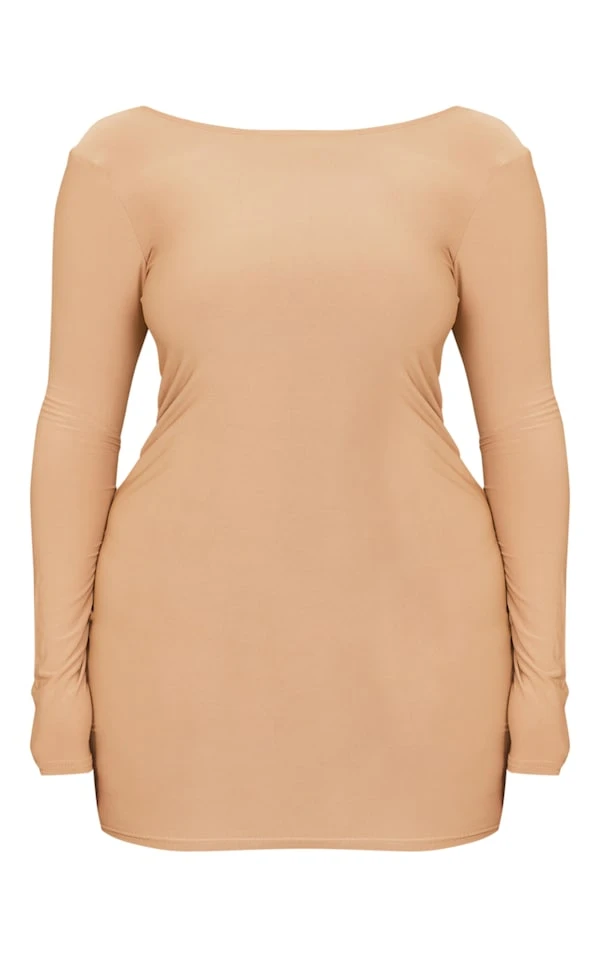 PRETTYLITTLETHING Shape Robe très moulante gris pierre à dos arrondi