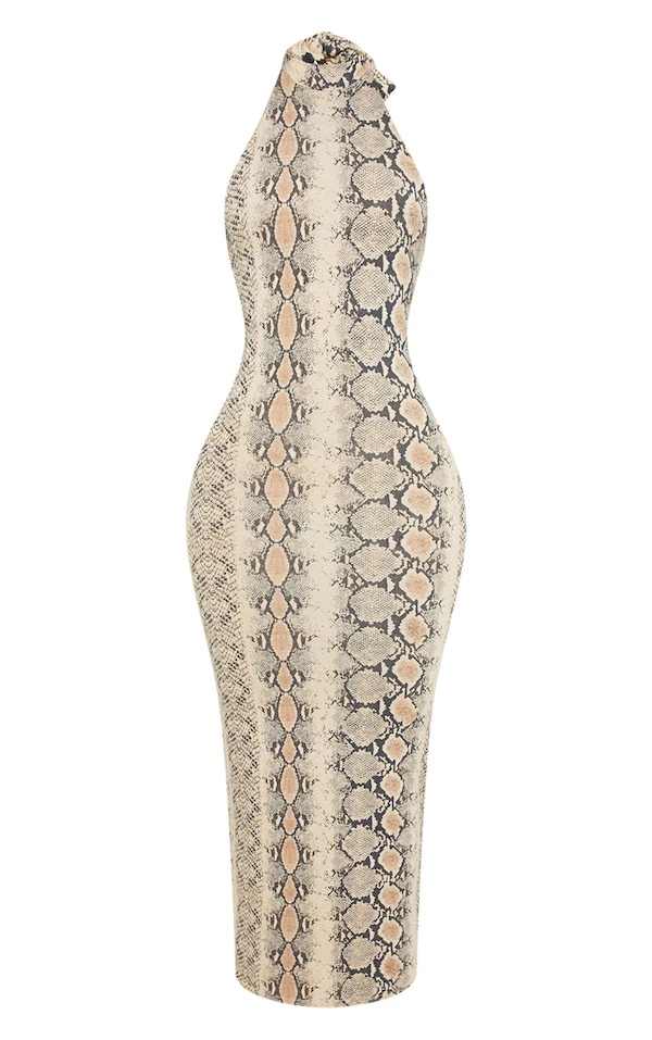 Shape Robe longue dos nu taupe à imprimé serpent