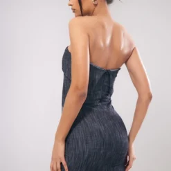 Robe Bustier Moulante Tissée Texturée Gris Anthracite Repliée
