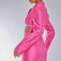 Robe Blazer En Effet Lin Bleu Clair à Corset Satiné Et Manches Longues