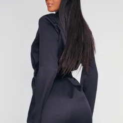 Robe Blazer Manches Longues Bleu Cobalt Style Jacquard à Ceinture
