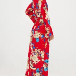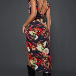 Robe Fendue Longue Texturée Rouille Satinée à Bonnets Plissés Et Bretelles