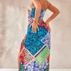 Robe Mi-longue Asymétrique Multicolore Imprimé Cachemire à Bretelles Et Liens à Nouer