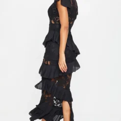 Robe Mi-longue Blanche Drapée En Dentelle à Détail Corset Et Bordure à Plumes
