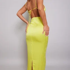 Robe Mi-longue Satinée Imprimé Renaissance Vert Citron à épaule Unique
