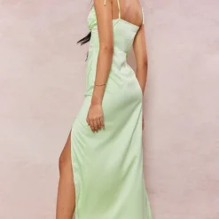 Robe Moulante Asymétrique En Mousseline De Soie Satinée Sauge Drapée