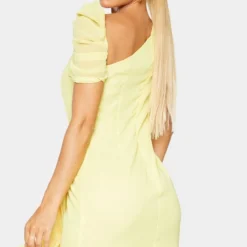 Robe Moulante Asymétrique En Mousseline De Soie Jaune Citron Détail Drapé
