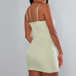 Robe Moulante Vert Sauge Tissée à Corset Détail Dentelle Et Bretelles