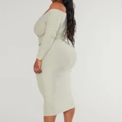 Robe Mi-longue Douce Gris Pierre à Dos Nageur Et Découpes Dans Le Dos
