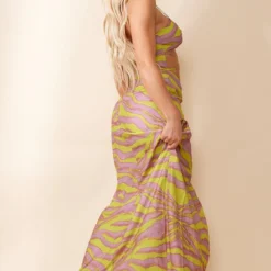 Robe Longue Multicolore Imprimé Animal Découpée Et Torsadée à Bretelles