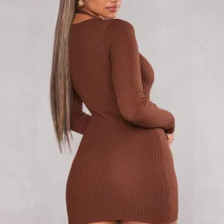 Robe En Maille Tricot Noire à Dos Ouvert Et Détail Barre En T