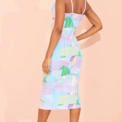 Robe Mi-longue Plissée Multicolore Imprimé Abstrait Bretelles