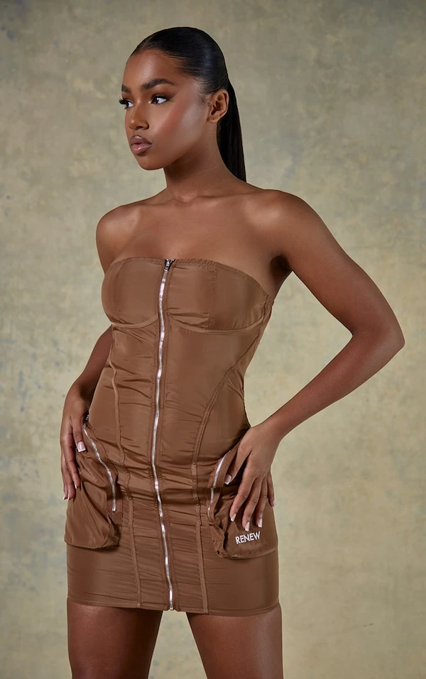 Trop stylée cette robe à la coupe moulante. Son style cargo est hyper cool et on adore son coloris marron et son style bustier. C’est impossible de passer à côté ! On enfile une paire de talons et quelques accessoires. On est fans de vous !