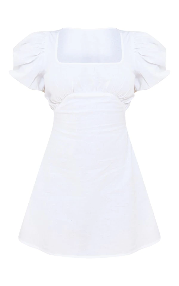 Robe babydoll blanche à manches bouffantes et col carré