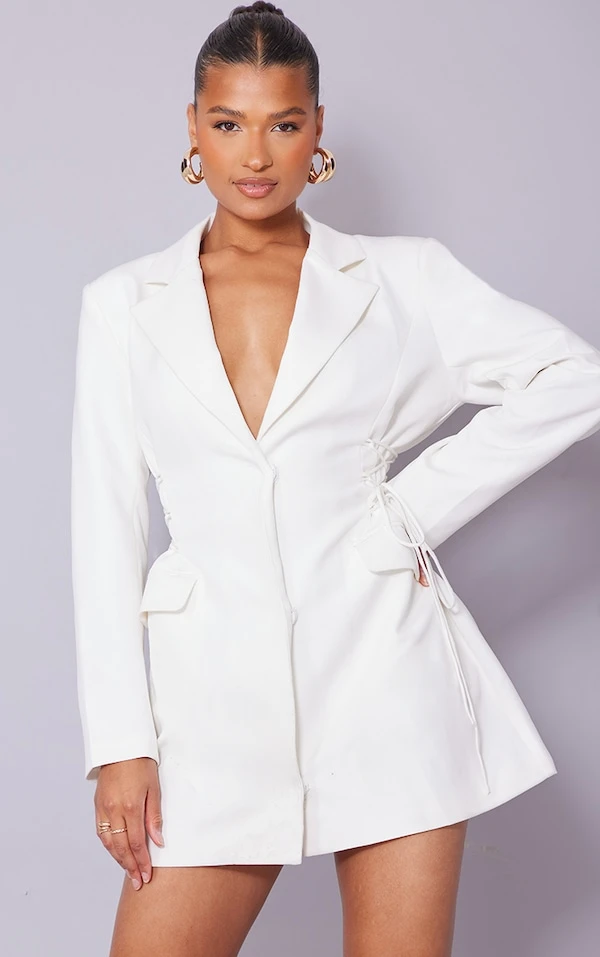 In love de cette robe blazer super élégante. On aime sa couleur crème douce, son design à lacets et le détail du corset qui fait toute la différence. On aime la porter avec une paire de mules et quelques accessoires, tout simplement !