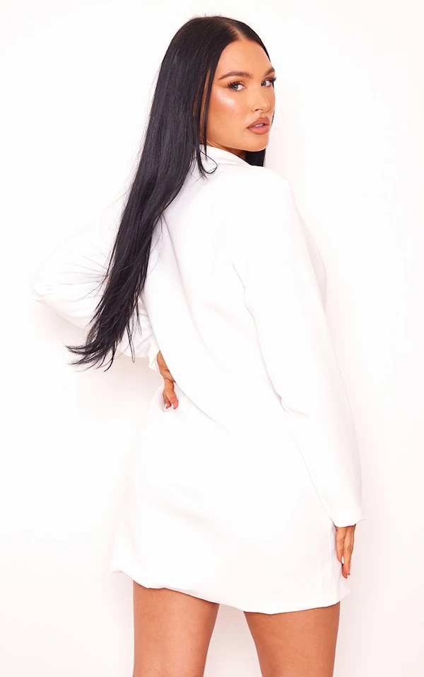 Robe blazer décolletée blanche à détail poches