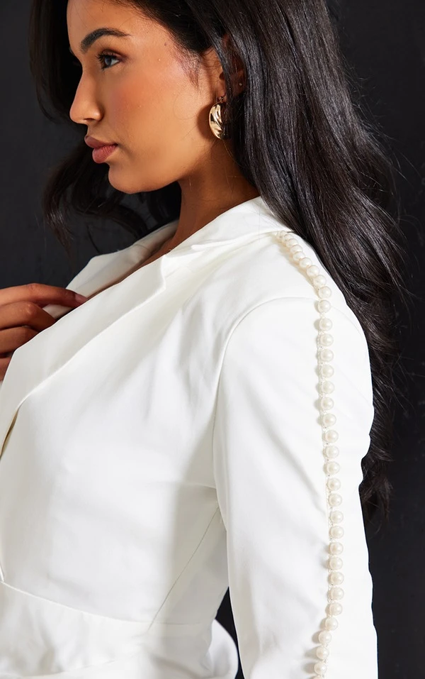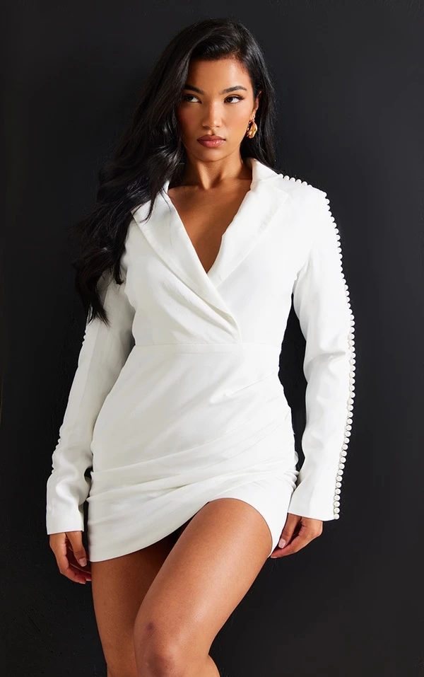 Glam au possible dans cette robe au style blazer ! On adore son coloris blanc épuré, son style portefeuille canon et sa bordure de perles hyper luxe. Plus qu’à enfiler une paire de talons lacés et quelques accessoires argentés. Magnifique.