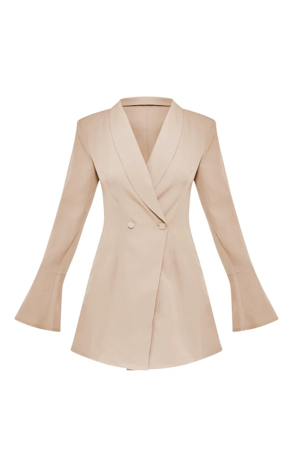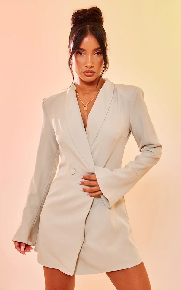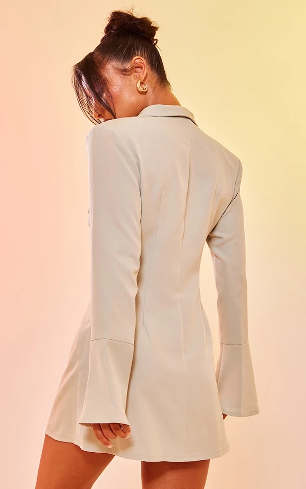 Robe blazer sauge à double boutonnière et manches flûtes
