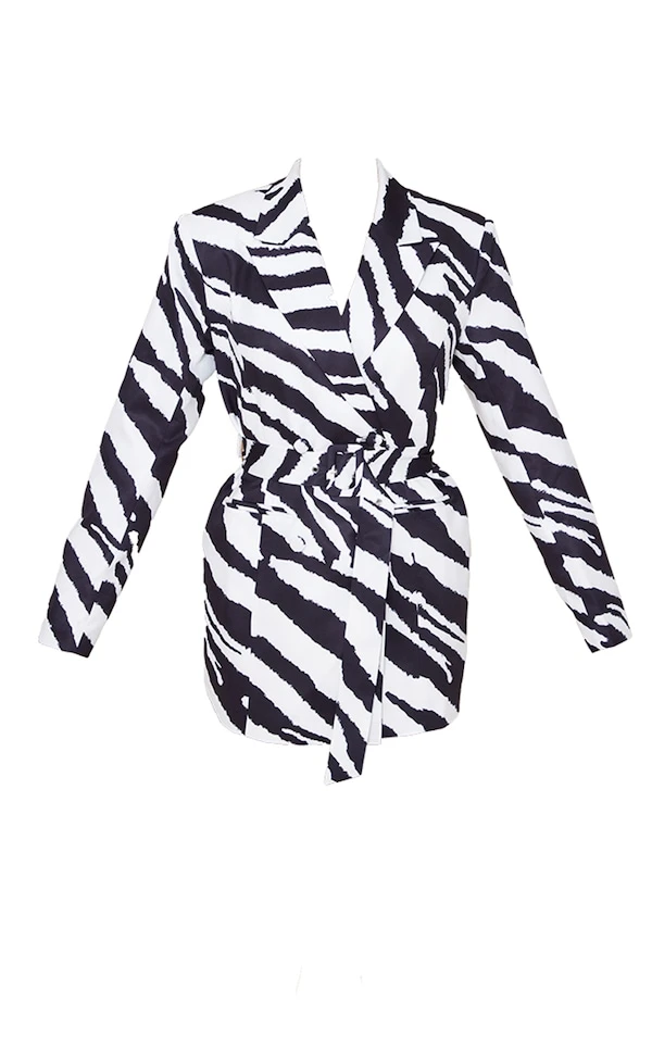 Robe blazer structurée imprimé zébré noir & blanc à nouer sur la taille