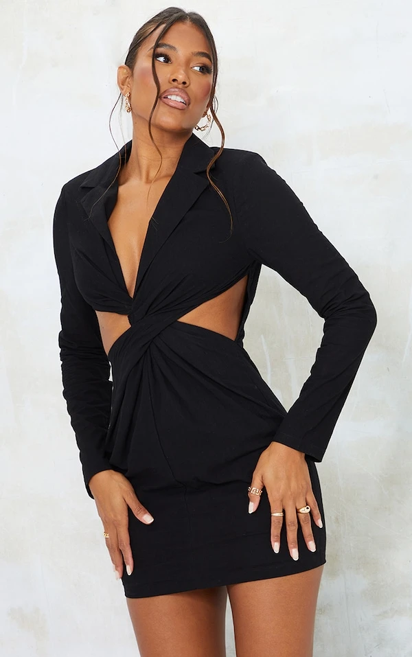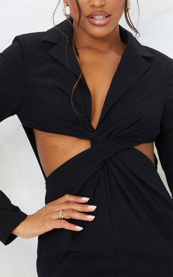 Robe blazer texturée noire découpée à torsade