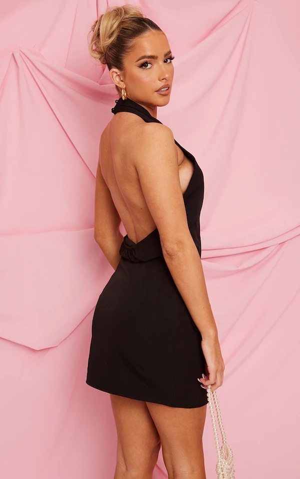 Robe blazer tissée noire style gilet à dos nu croisé