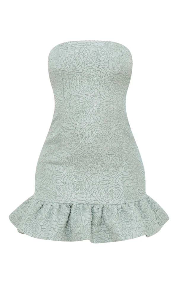 Robe bustier bouffante vert menthe texturée