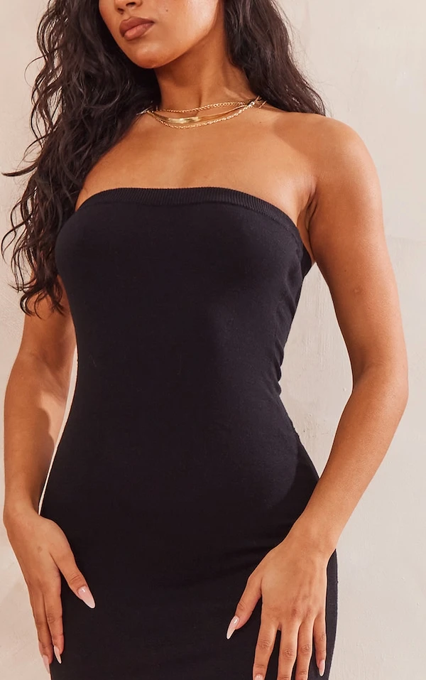 La robe de couleur noire sur laquelle on a eu un coup de coeur. Avec sa matière en maille tricot toute douce et son design bustier, on ne sait pas lui résister. Associée à une paire de mules et à quelques accessoires, cette robe vous assure un look 100% validé et qui met tout le monde d’accord !