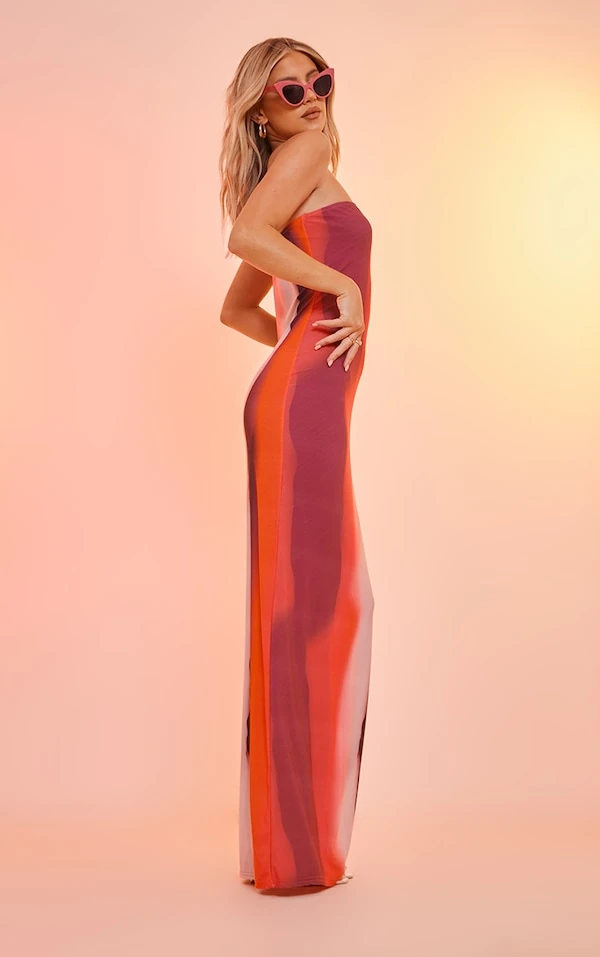Robe Bustier Longue Moulante Rose à Imprimé Dégradé – Image 4