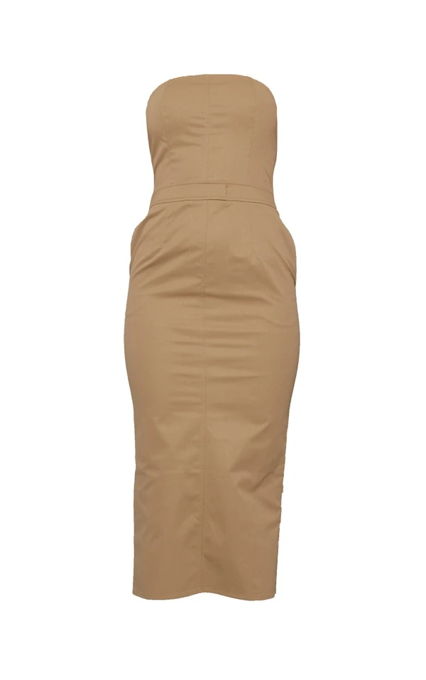 Divine dans cette robe bustier au design cargo et à la coupe longue. Avec sa couleur camel, cette robe est parfaite pour vous assurer un look à la fois chill et stylé. Pour ça, il ne manque qu’une paire de baskets et des chaussettes côtelées. Love it !
