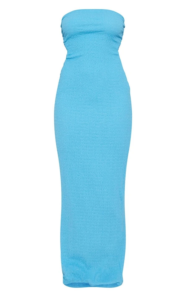 Robe bustier longue texturée bleue