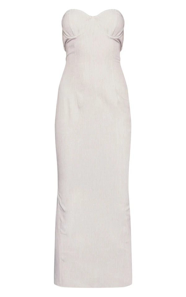 Robe bustier mi-longue effet lin gris pierre à armatures