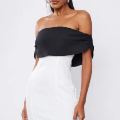 La robe bustier parfaite pour faire une entrée remarquée en soirée. Avec sa jupe strassée de couleur blanche et son design à col bardot, on l’adore. Portez-la avec une paire de mules et quelques accessoires brillants. Easy et tellement culte !