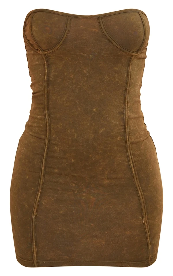 Robe bustier moulante kaki effet javélisé détail coutures