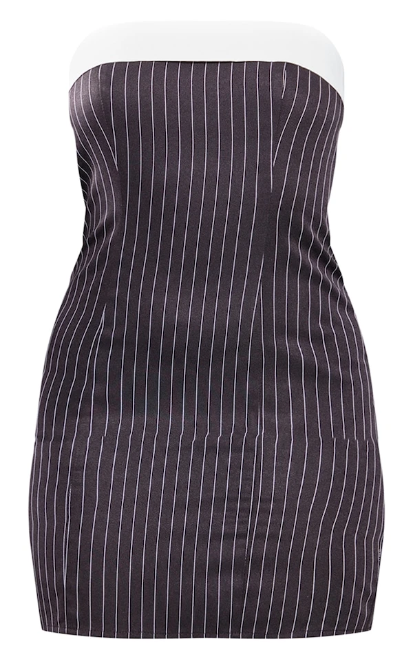 On adore le look années 60 de cette robe ! Avec sa matière noire à fines rayures et son design bustier, elle vous transforme en adorable pin-up avec des bottes montantes et un sac à main. In love !