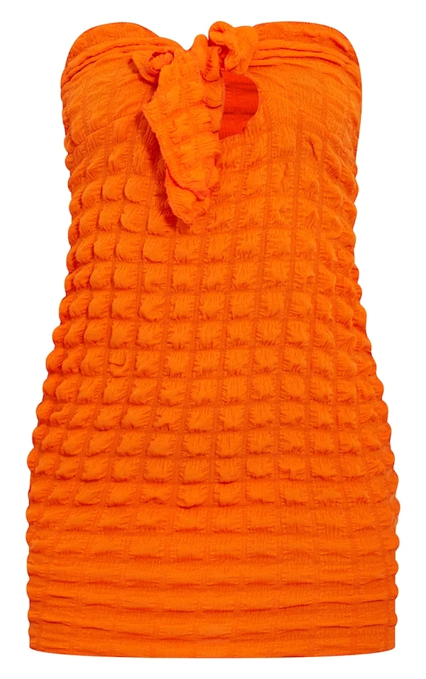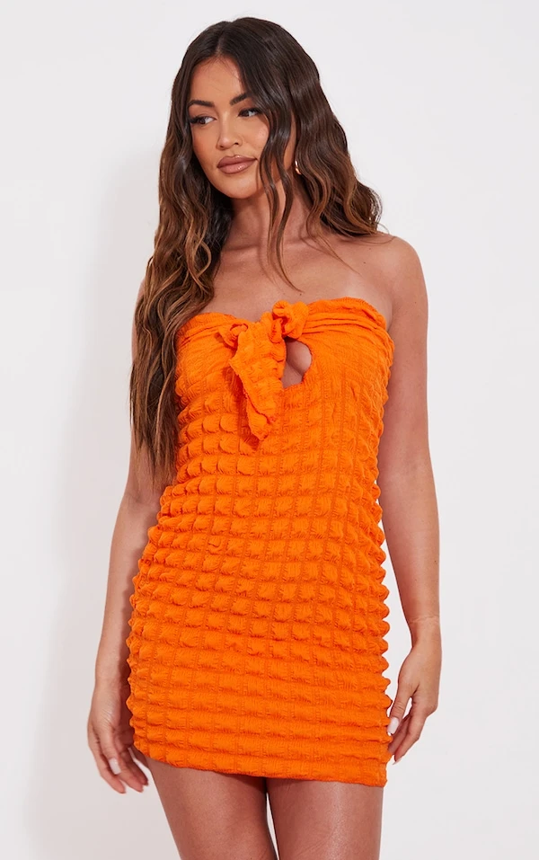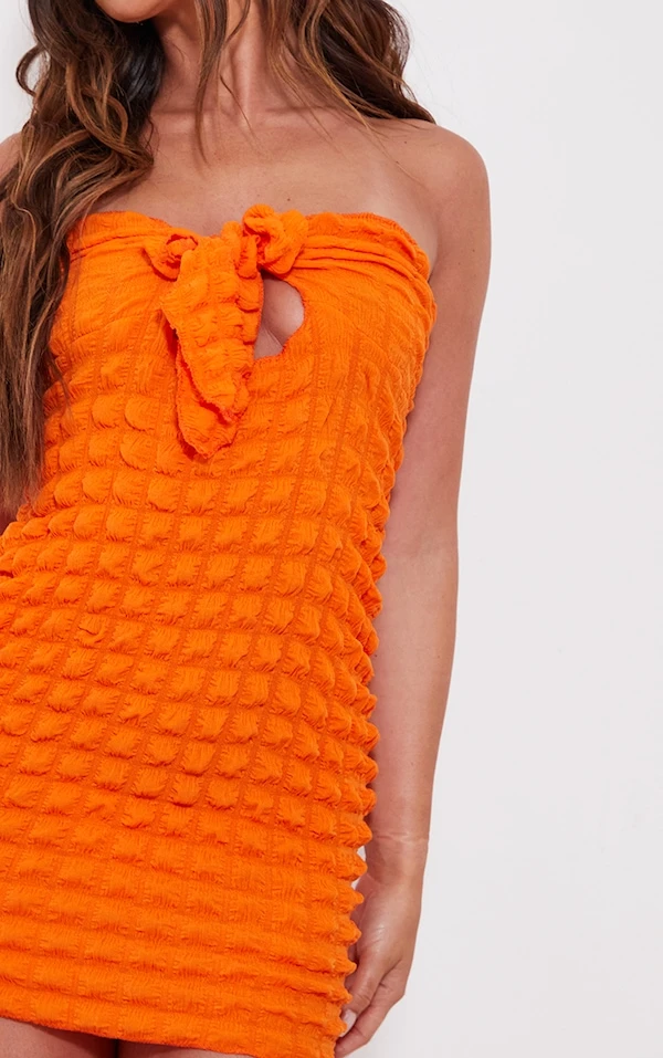 Robe bustier moulante orange texturée nouée sur le devant
