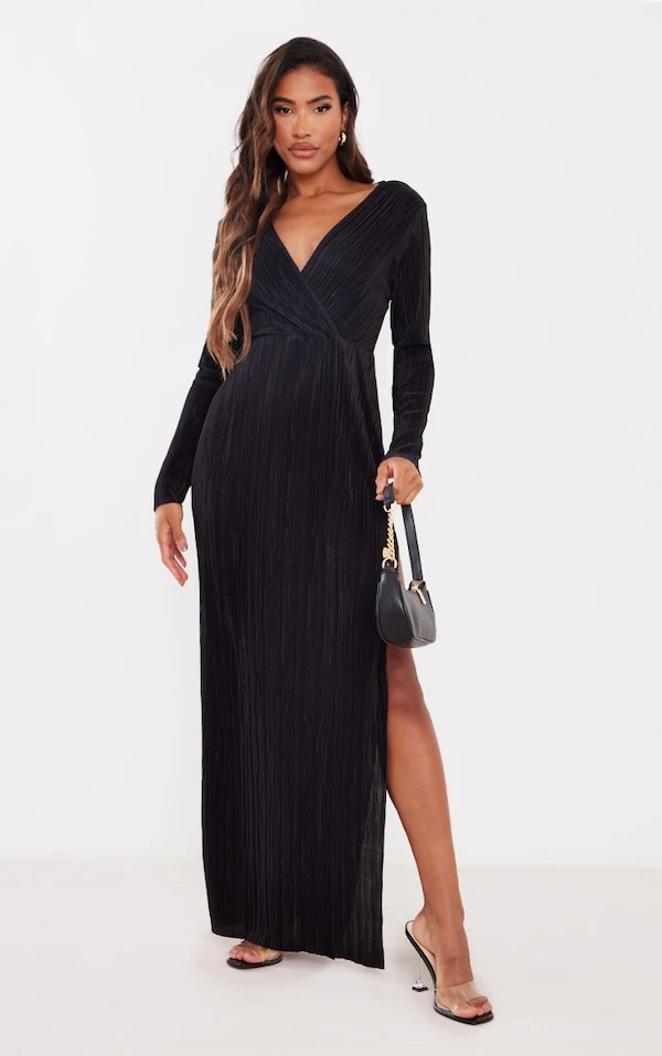 On shoppe illico cette robe longue ! Avec sa couleur noire indémodable, son design cache-coeur et son effet plissé, elle a tout pour plaire. Portez-la avec une paire de sandales à talon et quelques accessoires pour finaliser votre look du jour. Vous êtes sublime !
