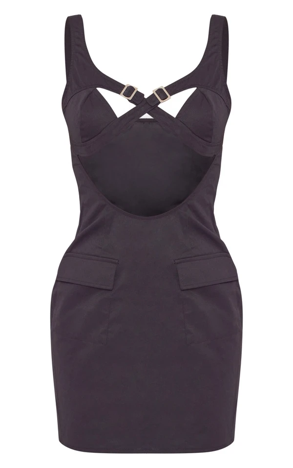Robe cargo moulante en maille tissée noire à boucles