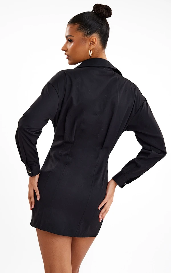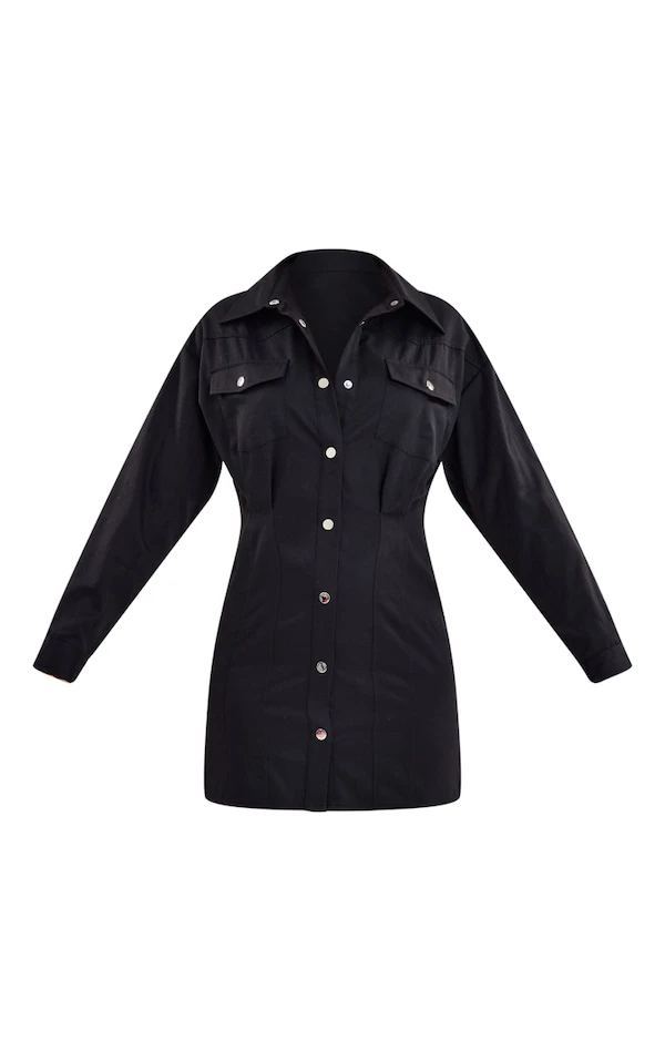 Robe chemise cargo noire à boutons-pression et taille ajustée