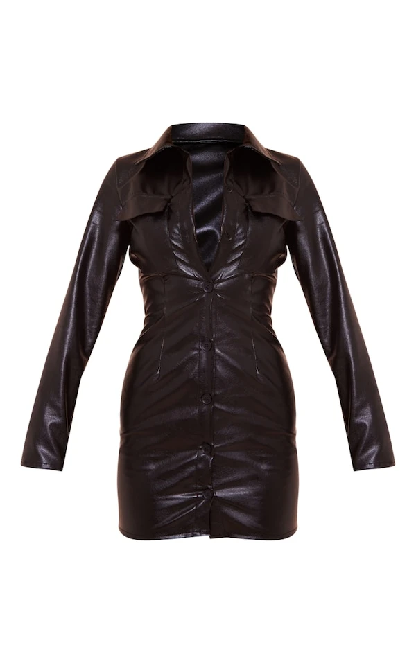 Robe chemise en similicuir noir à boutons